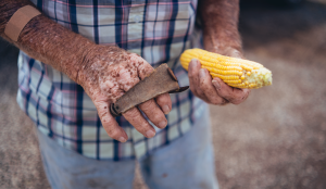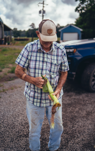 At the Hudson family farm in Berlin, Maryland, five generations of farmers work side by side. 89 year-old Roger Hudson likes to show off his corn husker, a hand tool used to strip corn. His son, Alan, prefers the speed and efficiency of a combine harvester.